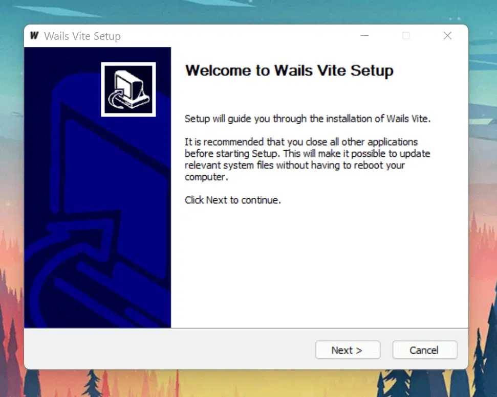 O Wails suporta a geração de instaladores do Windows usando o instalador do NSIS.
